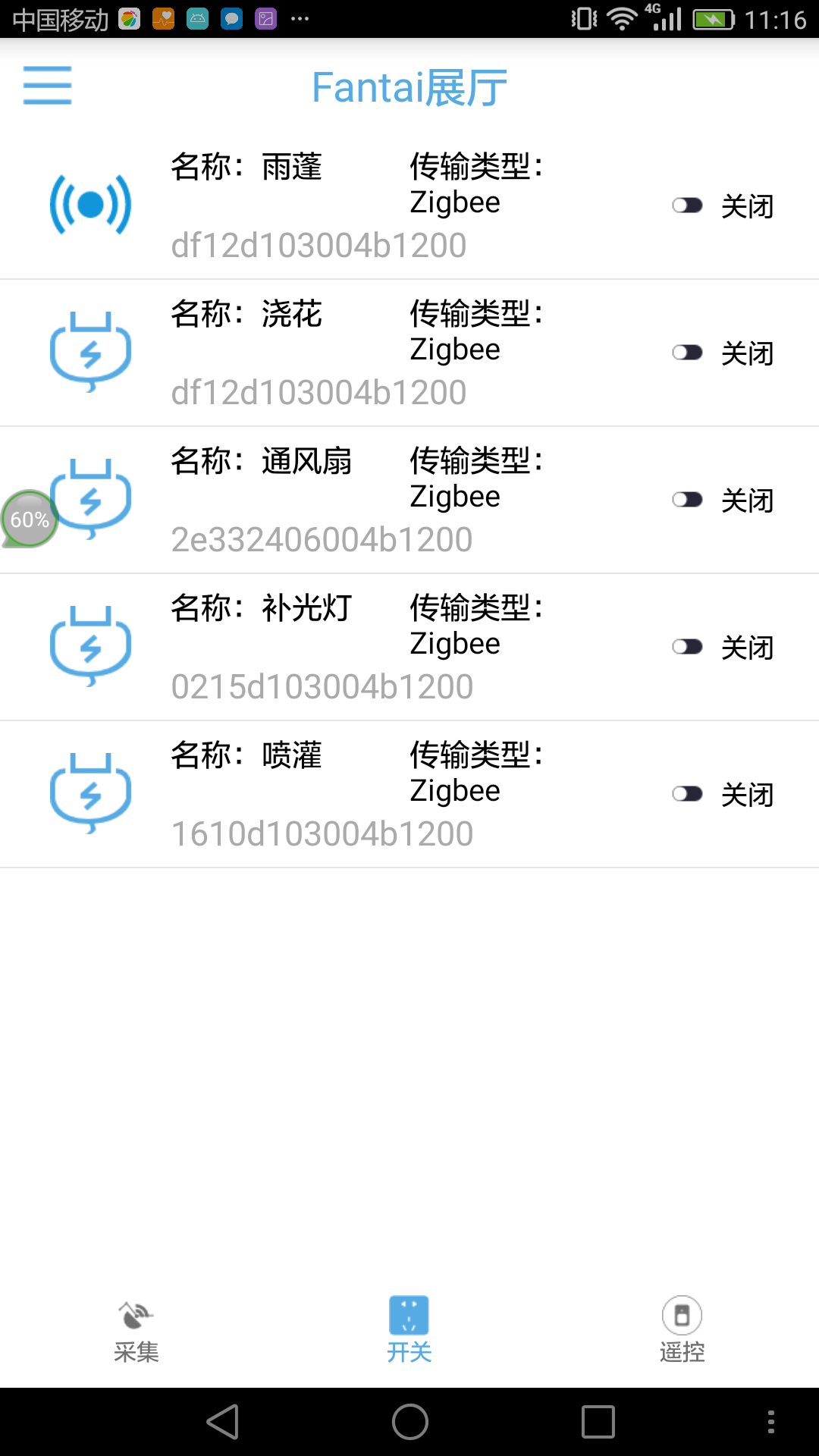功能:支持315M、433M、紅外等無線頻段的轉(zhuǎn)發(fā),通過智能遙控器,統(tǒng)一接入ZIGBEE網(wǎng)絡(luò),由物聯(lián)網(wǎng)網(wǎng)關(guān)統(tǒng)一管理。 由ZigBee通訊模塊、315/433MHz微功耗超外差無線收發(fā)模塊、紅外收發(fā)模塊、以及控制主板組成; 控制主板:采用51單片機(jī),具有射頻、紅外、ZigBee信號收發(fā)功能,射頻編解碼壓縮算法保證低數(shù)據(jù)量傳輸; 紅外收發(fā):內(nèi)置7個(gè)紅外發(fā)射頭,多方位水平發(fā)射,保證每條命令準(zhǔn)確送達(dá),可學(xué)習(xí)并遙控多種紅外設(shè)備,直線距離約8米; 射頻收發(fā):包含315/433射頻硬件,可學(xué)習(xí)并遙控多種射頻設(shè)備,直線距離約8米; 紅外頻率:38KHz; 射頻頻率:315/433MHz; ZigBee頻率:2.4GHz,Z-Stack2007協(xié)議棧; 輸入電壓:DC 5V; 輸入電流:≥1A。 |