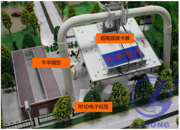 牲畜養(yǎng)殖場:系統(tǒng)將超高頻電子標(biāo)簽懸掛在牛羊模型上或者放在牛羊模型下模擬牛羊耳標(biāo),利用超高頻讀卡器多卡識別的特點動態(tài)讀取多張超高頻電子標(biāo)簽,用于實現(xiàn)養(yǎng)殖場牛羊牲畜的自動盤點。