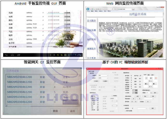 系統(tǒng)軟件默認采用 C/S 結構,主要包括無線網(wǎng)絡傳感器數(shù)據(jù)透明傳輸軟件、智能網(wǎng)關基于 Qt 的智能家居系統(tǒng)軟件、基于 Android 的智能家居系統(tǒng)軟件、基于 C#的智能家居系統(tǒng)軟件。同時系統(tǒng)提供基于 B/S 體系結構的智能家居網(wǎng)絡化遠程監(jiān)控軟件。