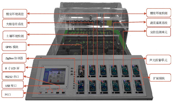 物聯(lián)網(wǎng)農(nóng)業(yè)教學實訓系統(tǒng)以高性能低功耗的網(wǎng)關(guān)控制器為核心,結(jié)合ZigBee無線傳感網(wǎng)及控制技術(shù),對系統(tǒng)中的農(nóng)作物生長過程中涉及的多種環(huán)境因素進行檢測和處理,并智能的對各種突發(fā)、惡劣情況進行實時處理,極大的節(jié)省了人力物力,保護生態(tài)環(huán)境,提高經(jīng)濟效益。
