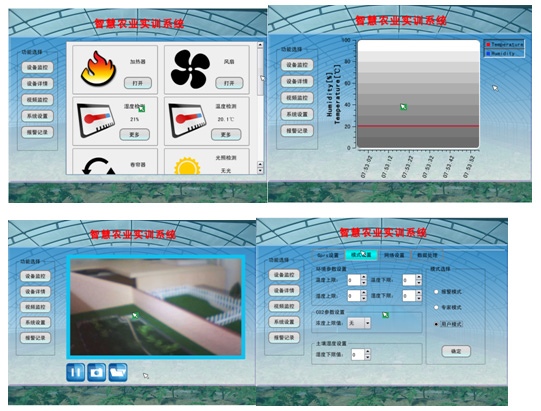 農(nóng)業(yè)沙盤中集成豐富的傳感器模塊、用于農(nóng)業(yè)環(huán)境監(jiān)控。卷簾、水泵、采用電機控制方  式,效果生動、直觀、便于演示。