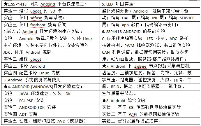 7、基于 WiFi/BT 的網(wǎng)絡通信開發(fā):可以開展 WiFi/BT 通信原理、WiFi/BT 模塊驅動開發(fā)、WiFi/BT 模塊原理設計、WiFi/BT 互聯(lián)網(wǎng)接入、WiFi/BT 移動通信與物聯(lián)網(wǎng)應用開發(fā)等。