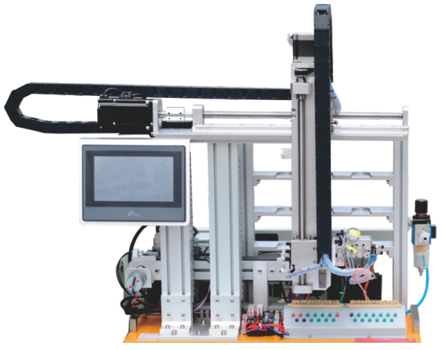 一、裝置特點(diǎn) 1. 配置三軸機(jī)器人作為裝配的執(zhí)行機(jī)構(gòu),具有 X軸、Y軸、Z軸三個方向的執(zhí)行能力,可完成智能抓取物料放料等功能; 2. 配置有光電開關(guān),光電傳感器,光纖...