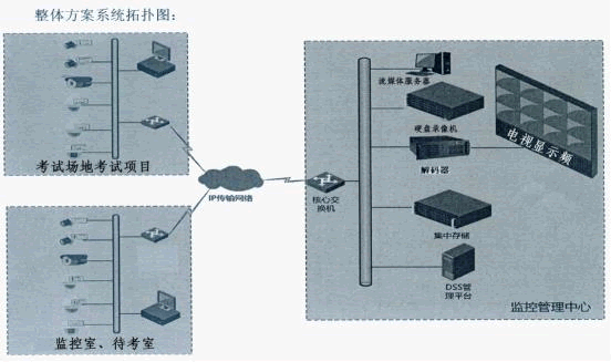 根據(jù)公安部123號部令標準,考試場地各考試項目及考場全景需實時視頻監(jiān)控,考試場地視頻監(jiān)控系統(tǒng)由視頻管理服務器、視頻管理軟件、硬盤錄像機、紅外智能球機、槍形攝像機及輔材、線材、電源單元等組成,達到考試場全景實時監(jiān)控的目的