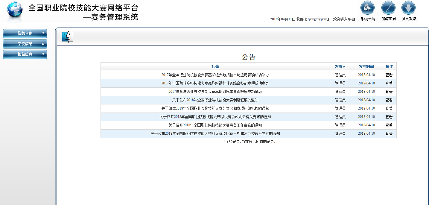 點(diǎn)擊“查看”按鈕,可進(jìn)入公告查看頁面,如圖:3-6-2: