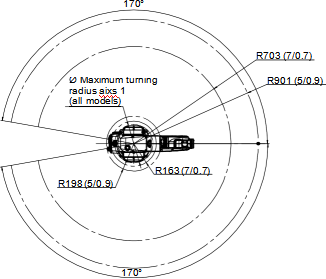 IRB 1200 機身小巧、有效工作范圍大,有利于加快生產(chǎn)節(jié)拍、減少設(shè)備占用空間。