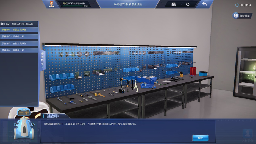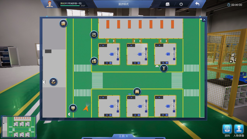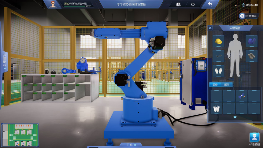 9、友好操作體驗(yàn)設(shè)計(jì):設(shè)置專用工具欄,可以通過工具欄中的快捷鍵快速選擇工具,提高實(shí)訓(xùn)系統(tǒng)使用效率,同時(shí)加深對(duì)工具的認(rèn)識(shí)。地圖及快速跳轉(zhuǎn)、箭頭指示多形式導(dǎo)航,通過小地圖實(shí)現(xiàn)快速跳轉(zhuǎn)到機(jī)器人NPC獲得指引。地標(biāo)指引箭頭,有效提示下一任務(wù)的操作位置。
