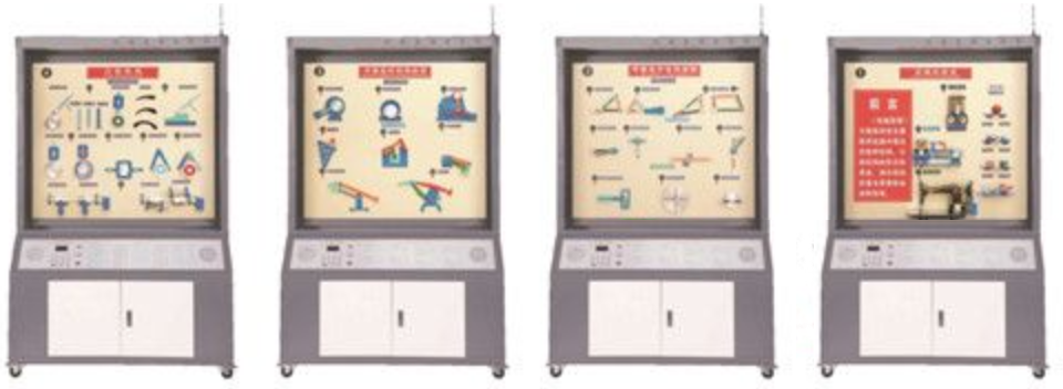 “機械原理陳列柜(10個分柜,帶智能語音講解)”是根據(jù)各院?!稒C械原理》等相關課程的教學大綱要求而研制的。它由10個陳列分柜組成,主要展示平面連桿、組合、空間、凸輪、齒輪、間歇運動等各種機構及輪系的類型和功用。具有多功能語音播放控制系統(tǒng),可以控制陳列柜中各種機構的運行動作并進行實時講解,通過智能控制的陳列柜進行教學,可讓學生初步了解和掌握常見機構及輪系的機械原理。
