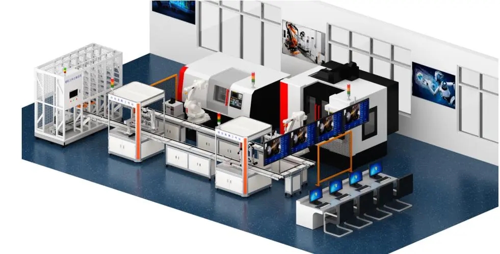 數(shù)控車床加工中心單元用于整個工件的軸類部份的加工,采用自動門、自動裝夾、四工位自動刀架、并有工件冷卻加工系統(tǒng),現(xiàn)實機加工件無人化DNC自動加工,配置伺服電機、工業(yè)級數(shù)控系統(tǒng)。