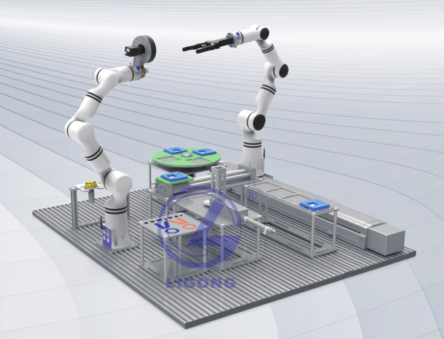 LGAI-ROS02型 人工智能協(xié)作機器人綜合實訓平臺基于協(xié)作機器人配備??迪鄼C、機器人導軌、平面?zhèn)}庫、旋轉倉庫、快換工具以及多種類型的末端工具,涵蓋機器人系統(tǒng)、工業(yè)視覺系統(tǒng)、自動化控制系統(tǒng)、計算機編程技術等,可以在一臺設備上進行多種與機器人應用技術相關的學習和實訓,平臺結構緊湊、拆卸方便,便于應用,支持二次開發(fā)應用設計,是一個綜合性較強的機器人系統(tǒng)實訓設備。
