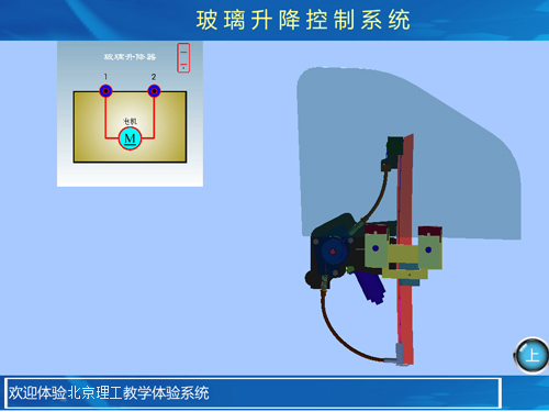 玻璃升降器虛擬仿真教學(xué)軟件 選用原車玻璃升降器進(jìn)行建模,它由電動(dòng)機(jī)與減速器兩部分組成 ,在汽車虛擬軟件中完全展現(xiàn)并且360度任意旋轉(zhuǎn),亦可實(shí)現(xiàn)場景平移功能。...整車電器電路3D虛擬仿真教學(xué)軟件