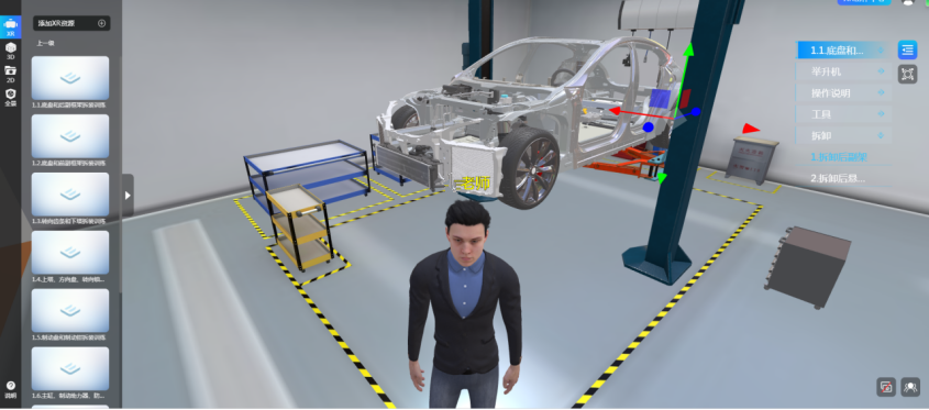 一、產(chǎn)品概述 汽車底盤拆裝仿真教學軟件是一款基于汽車底盤構造與維修,開發(fā)的仿真教學軟件。利用仿真技術模擬實際的汽車底盤的拆裝過程,主要包括:左前制動系...LGE-ZC012型 新能源整車理實一體實訓臺