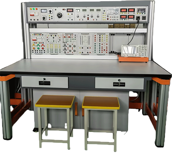 裝置由主機箱、實驗桌、實訓(xùn)掛箱、獨立封裝實訓(xùn)電路模塊、移動矮柜、示波器架、學(xué)生凳等組成。實訓(xùn)裝置支架與實訓(xùn)桌可組合、可拆裝。支架與桌腳一體,鋁合金結(jié)構(gòu),實訓(xùn)掛箱、各實驗?zāi)K可根據(jù)實驗需求自由組合放置。