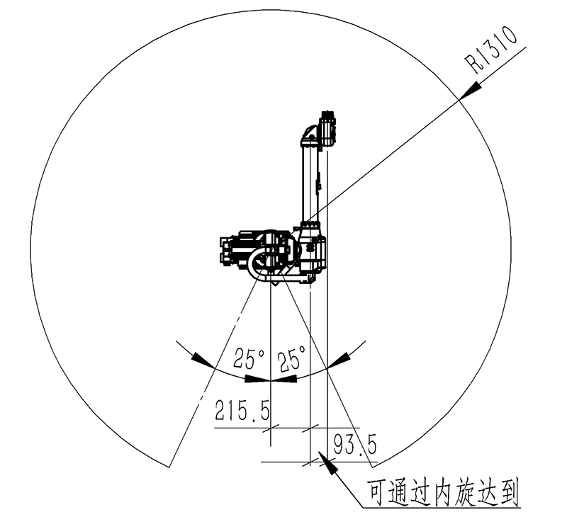 2、高精度,高靈活性:平均重復精度可達+0.03mm,*大0.05mm;不僅具備通用6軸功能,當使用通用機器人用法功能無足夠空間時,還可以編程內(nèi)旋轉模式另辟蹊徑實現(xiàn)避讓。
