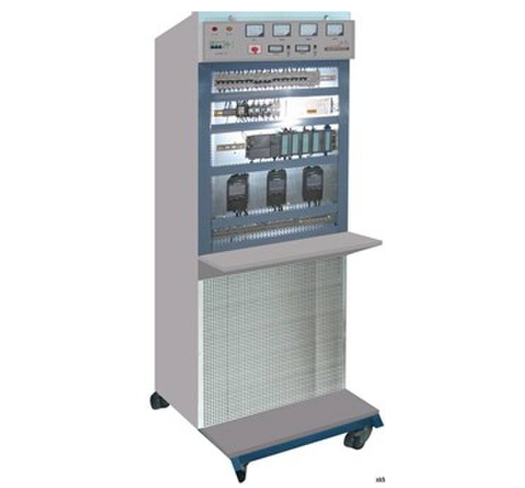 網(wǎng)板式PLC變頻器實訓柜是在電工的基礎上進行改進,增加了PLC直接控制工業(yè)電氣實驗、再增加了變頻器的自動調速實驗,增加了電腦網(wǎng)絡連網(wǎng)考試功能,可有老師主控電腦制進行自動聯(lián)網(wǎng)考試。該裝置按標準電氣控制柜設計制造規(guī)格,采用網(wǎng)孔板結構,柜內(nèi)裝有電路所需的PLC、變頻器、電度表、日光燈、開關、插座、感應開關、漏電開關以及電氣控制所需要的多種低壓電器,如漏電斷器、熔斷器、電流、互感器、交流接觸器、時間繼電器、熱繼電器、中間繼電器、行程開關、按鈕、信號燈、轉換開關、電壓表、電流表、有動功率表、無動功率表、電度表和工作電源、定時、誤操作記錄儀等,增加了電腦網(wǎng)絡式連網(wǎng)考核功能,可由教師主控電腦控制64臺。