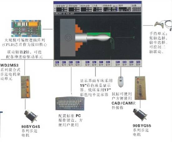 它可與計算機構成雙向通訊,與 CAD/CAM 軟件設計聯網實物加工。配置與功能見車床說明書