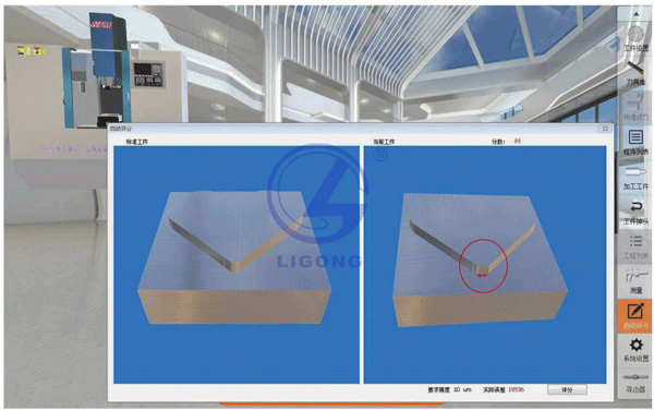 不同于普通的數(shù)控實訓(xùn)儀,LGS-SX02型 數(shù)控車銑加工一體化創(chuàng)新仿真實訓(xùn)平臺支持對實訓(xùn)過程自動化評價并實現(xiàn)加工結(jié)果自動化評分,并且能夠精準(zhǔn)地檢測加工工件與標(biāo)準(zhǔn)工件的具體誤差,誤差精確到微米。