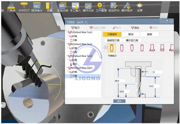 LGS-SX02型 數(shù)控車銑加工一體化創(chuàng)新仿真實訓(xùn)平臺中的數(shù)控機(jī)床、刀具、夾具、工件和CNC控制器采用數(shù)字孿生軟件實現(xiàn),用軟件取代實際機(jī)床和相關(guān)硬件。數(shù)字孿生軟件克服了數(shù)控加工設(shè)備價格昂貴、占地大、更新速度慢等問題,解決了培訓(xùn)人員多而機(jī)床設(shè)備少的問題,節(jié)省耗材、節(jié)約用電,也為學(xué)校節(jié)省了大量設(shè)備購置經(jīng)費,在數(shù)控系統(tǒng)和機(jī)床升級時,只需更新軟件,不需更新物理設(shè)備,便于更新改造。滿足大批量的教學(xué)培訓(xùn)需求,一舉多得。