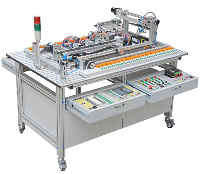 本設(shè)備主要包括實(shí)訓(xùn)臺(tái)架、典型的機(jī)電一體化設(shè)備的機(jī)械部件、PLC模塊、變頻器模塊、按鈕模塊、電源模塊、模擬生產(chǎn)設(shè)備實(shí)訓(xùn)模塊、接線端子排和各種傳感器等組成。整體結(jié)構(gòu)采用開放式和拆裝式,實(shí)訓(xùn)裝置用于機(jī)械部件組裝,可根據(jù)現(xiàn)有的機(jī)械部件組裝生產(chǎn)設(shè)備,也可添加機(jī)械部件組裝其他生產(chǎn)設(shè)備,使整個(gè)裝置能夠靈活的按教學(xué)或競賽要求組裝具有生產(chǎn)功能的機(jī)電一體化設(shè)備。