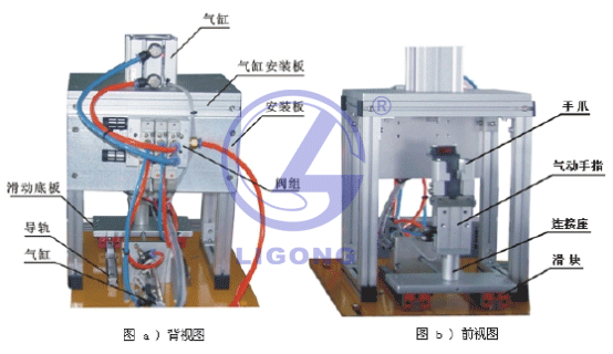 選用該裝置配置的單出桿氣缸、單出雙桿氣缸、旋轉(zhuǎn)氣缸等氣動(dòng)執(zhí)行元件和單控電磁換向閥、雙控電磁換向閥和磁性開關(guān)等氣動(dòng)控制元件,可完成下列氣動(dòng)技術(shù)的工作任務(wù):