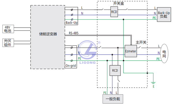 3、當(dāng)電網(wǎng)出現(xiàn)故障時(shí),光儲(chǔ)系統(tǒng)自動(dòng)切換至離網(wǎng)運(yùn)行模式,由光伏電池和儲(chǔ)能電池同時(shí)向負(fù)載供電;