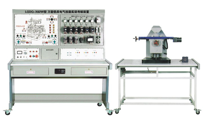 LGDQ-X62W 型 萬(wàn)能銑床電氣技能實(shí)訓(xùn)考核裝置 ( 半實(shí)物 )由電源控制部分、機(jī)床電氣控制部分、半仿真機(jī)床實(shí)物部分構(gòu)成。電源控制部分包括實(shí)訓(xùn)定時(shí)、定時(shí)報(bào)警、安全用電自動(dòng)控制等,機(jī)床電氣控制部分把整臺(tái)機(jī)床內(nèi)部電器裝在正面面板上,能直觀地觀察機(jī)床工作時(shí)各電器的動(dòng)作狀況。故障點(diǎn)在面板上設(shè)有相應(yīng)測(cè)試點(diǎn),供實(shí)訓(xùn)考核者測(cè)試用。仿真機(jī)床部分能模擬機(jī)床各種運(yùn)動(dòng)。通過(guò)萬(wàn)能銑床電氣技能實(shí)訓(xùn)考核裝置 的實(shí)訓(xùn)能使學(xué)員掌握機(jī)床常見(jiàn)故障的現(xiàn)象、故障產(chǎn)生的大概部位,熟練掌握機(jī)床電路工作原理,其是維修電工初、中、高級(jí)技能鑒定的理想實(shí)訓(xùn)設(shè)備。