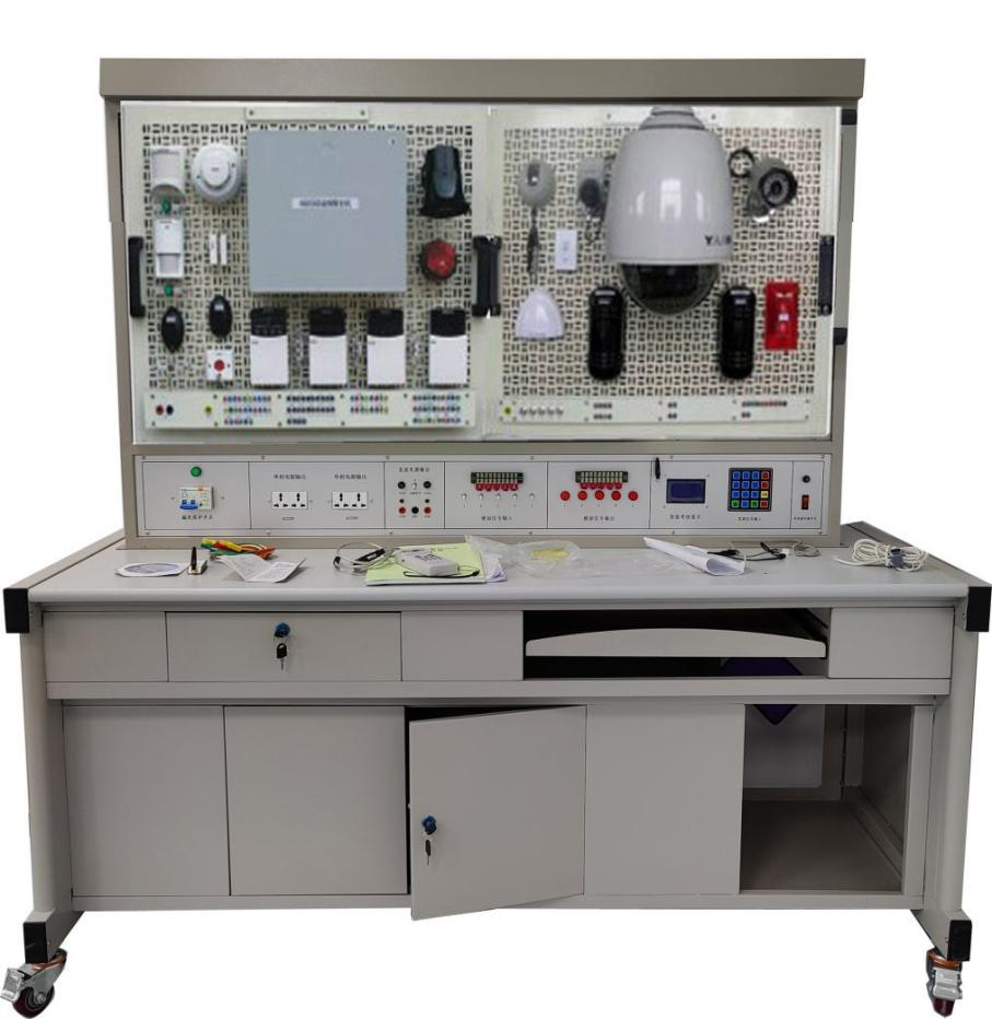 LGN-ZNF02型 安全防范與小區(qū)管理實訓裝置采用實訓臺架和網(wǎng)孔板結構,桌面為高級防火防水板,耐磨高密度板,結構堅固,配有常用電源控制柜,能對各系統(tǒng)進行供電、接線、調試運行和維護實訓和考核;模擬實際工程環(huán)境,實現(xiàn)智能樓宇設備接線、系統(tǒng)調試、物業(yè)運營維護等多方面實訓要求。桌子下面用于放置工具、存放資料等,實訓桌還設有四個萬向輪和四個固定調節(jié)機構,便于移運和固定,有利于實訓室布局。本系統(tǒng)控制電源部分全部采用實物,智能考核控制屏、控制臺輸出多種電壓電源、供實訓模塊使用、電腦軟件系統(tǒng)等組成;系統(tǒng)設備將視頻監(jiān)控、樓宇對講及門禁、防盜報警和巡更系統(tǒng)作為活動模塊,根據(jù)課程的不同,將活動的模塊固定到實訓臺上進行實訓;系統(tǒng)不用時,可將模塊放入固定倉儲位置。