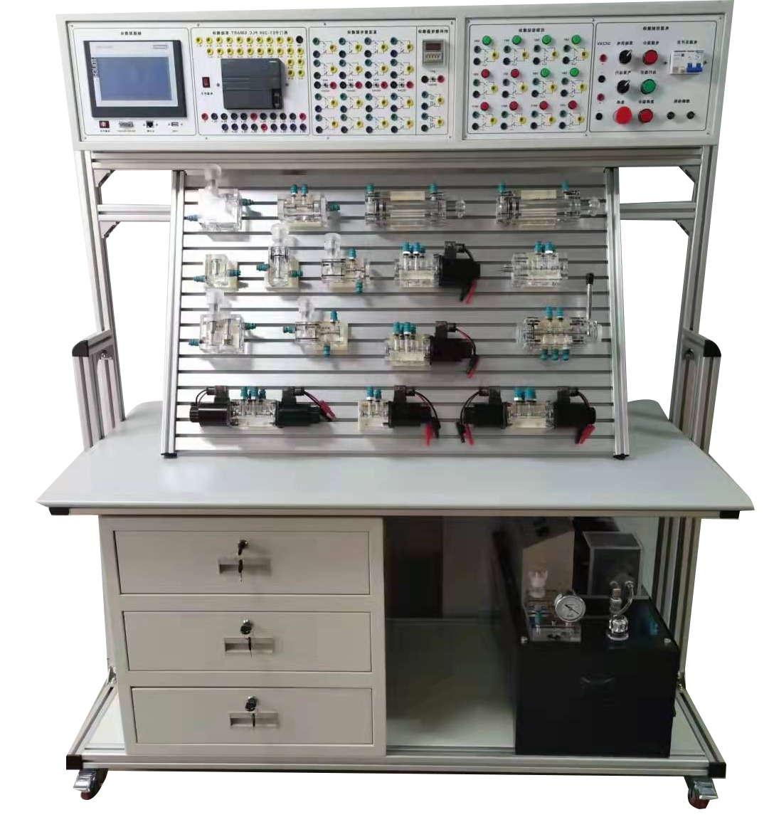 1、液壓PLC控制實訓(xùn)裝置主要由實訓(xùn)桌、實訓(xùn)臺、液壓元件和電器控制器件、可編程控制器(PLC)等器件組成。