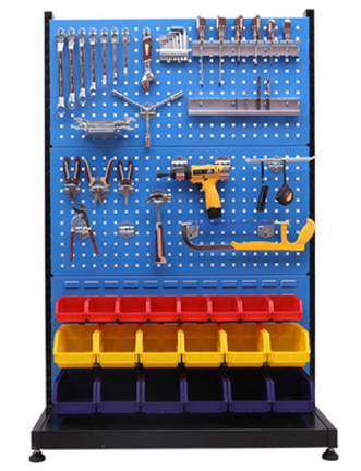 工具架采用3層掛板工具架,立柱采用2.0mm優(yōu)質(zhì)矩形管,掛板采用1.5mm冷軋鋼板制作;掛板為藍(lán)色,立柱和底板為黑色,配置鋁合金手柄,方便移動(dòng),能夠完成工具的有序掛置與存放,充分利用空間,整潔高效率,環(huán)保無毒。配置專用掛鉤,整體尺寸為:960*375*1450mm(長寬高)。