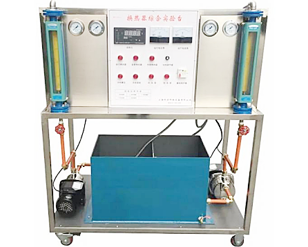 套管式換熱器,板式換熱器,列管式換熱器,冷、熱水防腐水泵,冷、熱水轉(zhuǎn)子流量計,冷、熱水不銹鋼原水箱及加熱水箱,順、逆流調(diào)節(jié)閥門組,阻力測試壓力表及U型差壓計,加熱由固體調(diào)壓模塊無級調(diào)節(jié),萬能信號輸入巡檢儀顯示溫度,電流表,電壓表,不銹鋼臺架及控制屏等。