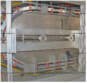 采用彈簧式張緊裝置,使梯級鏈條始終保持張緊狀態(tài),及時抵消在可控范圍內(nèi)因梯級伸長而造成梯級(踏板)等相關(guān)部件的偏離、晃蕩、沖撞與噪聲。本裝置全部采用鋁合金板材制作。