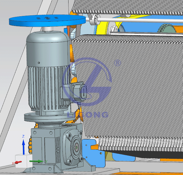 由交流電機、專用減速器、制動器、手動盤車和傳動齒輪等組成。
