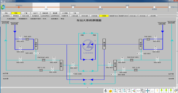 重點(diǎn)針對(duì)軌道交通車(chē)站上環(huán)境及設(shè)備的監(jiān)控(BAS)、數(shù)據(jù)監(jiān)測(cè)及調(diào)整,能與FAS系統(tǒng)聯(lián)動(dòng)。