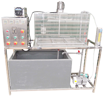 反應(yīng)池、曝氣頭、抽吸泵、氣泵、水泵、流量計(jì)、配水箱、穿孔曝氣器、不銹鋼可移動(dòng)框架、控制屏。