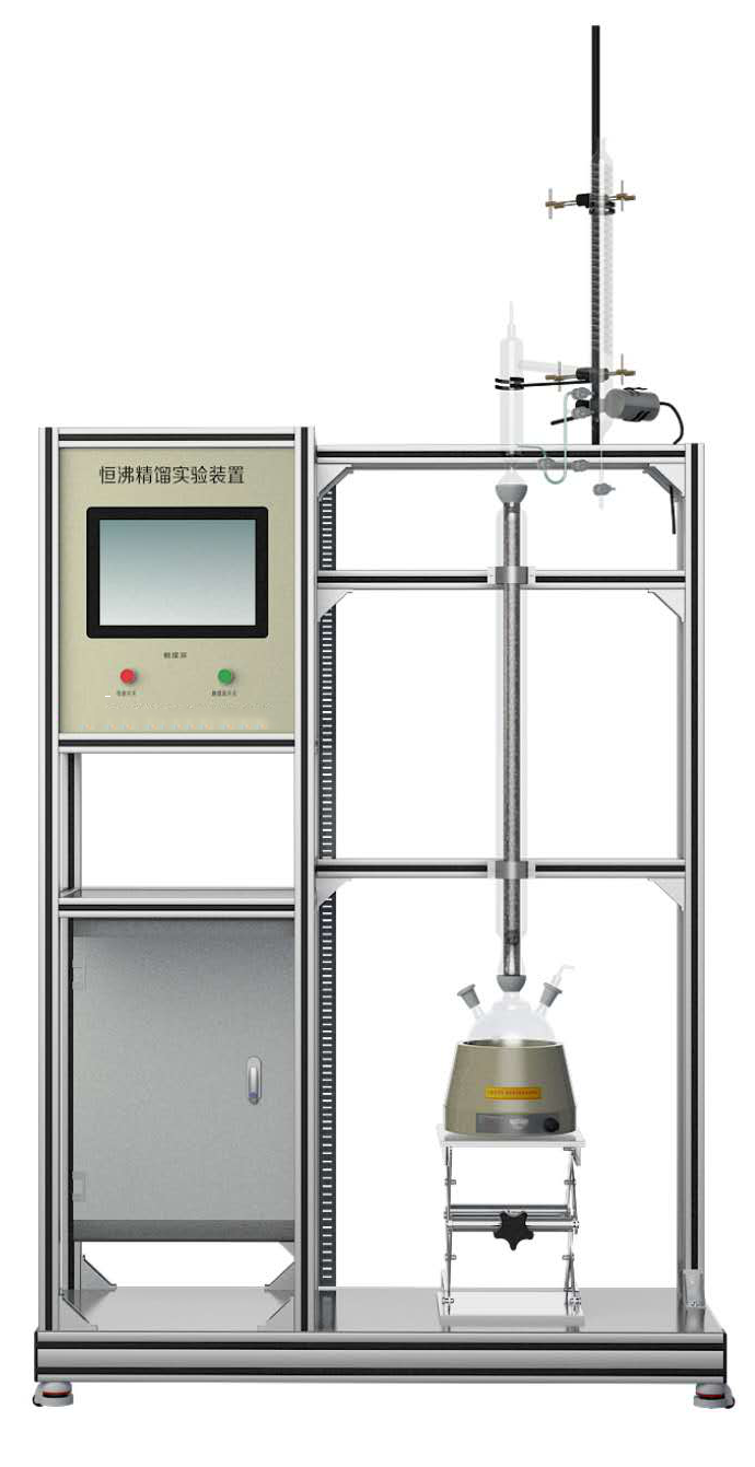 玻璃精餾塔、保溫塔、冷凝器、玻璃塔釜、油水分離器、加熱器、U型壓力計、溫度傳感器、中央處理器、觸摸屏、高品質鋁合金型材框架。