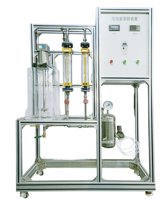 鼓泡釜、空壓機、流量計、攪拌器、氣體分布器、調(diào)速電機、變頻器、空氣緩沖罐、氣體調(diào)壓閥、數(shù)字顯示儀表、高品質(zhì)鋁合金型材框架。