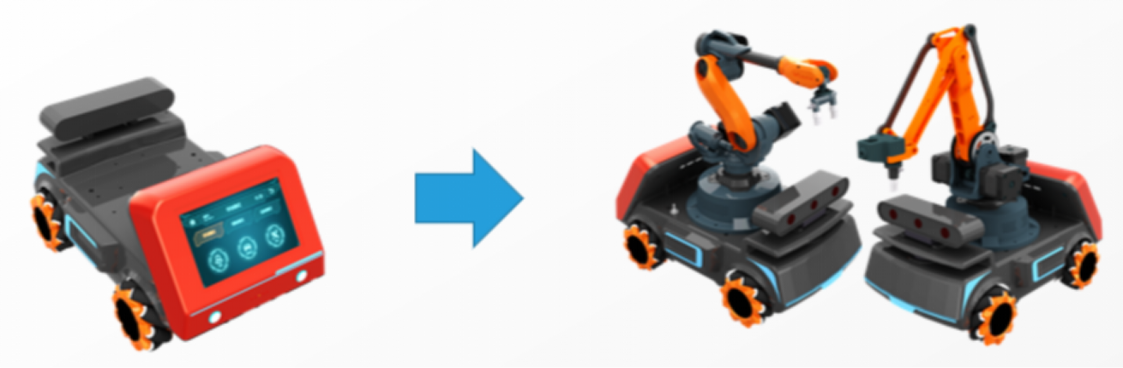 ROS移動(dòng)機(jī)器人*1;導(dǎo)航掃描單元*1;機(jī)器人末端視覺模塊*1;桌面六軸機(jī)器人*1