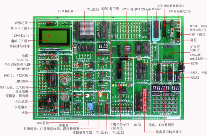 實(shí)驗(yàn)電路單元盡可能獨(dú)立開放,如開放式鍵盤, 開放式顯示器,開放式串口等,為適應(yīng)多種方式實(shí)驗(yàn)提供可能。