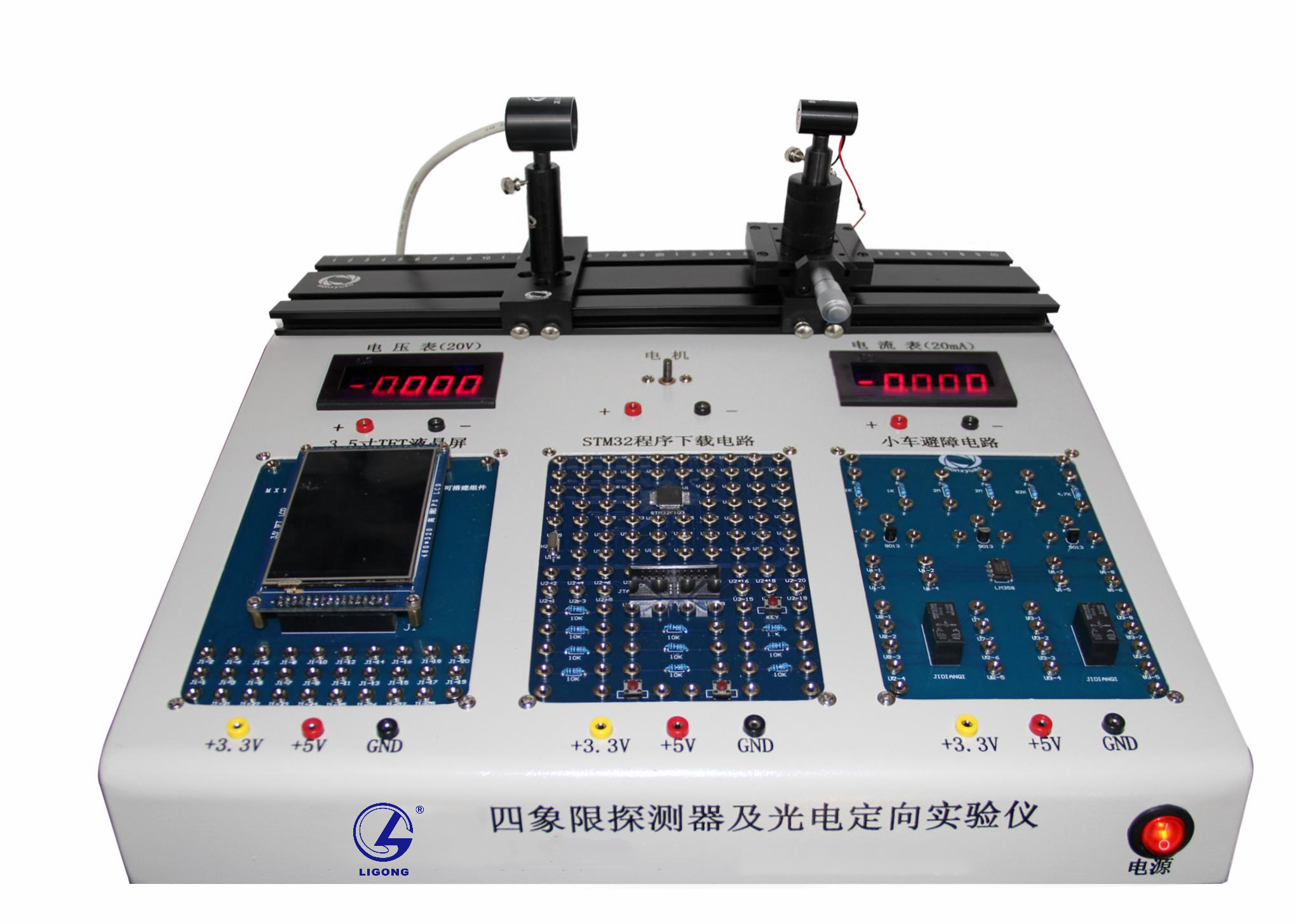 LG-SXGD01型 四象限探測器及光電定向?qū)嶒?yàn)儀利用光學(xué)系統(tǒng)測定目標(biāo)的方位,在實(shí)際應(yīng)用中具有精度高,反應(yīng)快,價格低,便于自動控制和操作方便等特點(diǎn)。因此,在光電準(zhǔn)直,光電制導(dǎo)和光電測距等各個領(lǐng)域得到廣泛的應(yīng)用。本款產(chǎn)品除了讓學(xué)生了解并掌握四象限光電傳感器的原理與特性之外,還開設(shè)了針對四象限光電傳感器在實(shí)際應(yīng)用方面的實(shí)驗(yàn),如光電測距,智能小車避障,光電位置檢測等實(shí)驗(yàn),使學(xué)生由淺入深的學(xué)習(xí)并掌握四象限光電傳感器,從而達(dá)到能夠獨(dú)立設(shè)計(jì)完成光電測距、光電定向等方面的項(xiàng)目。